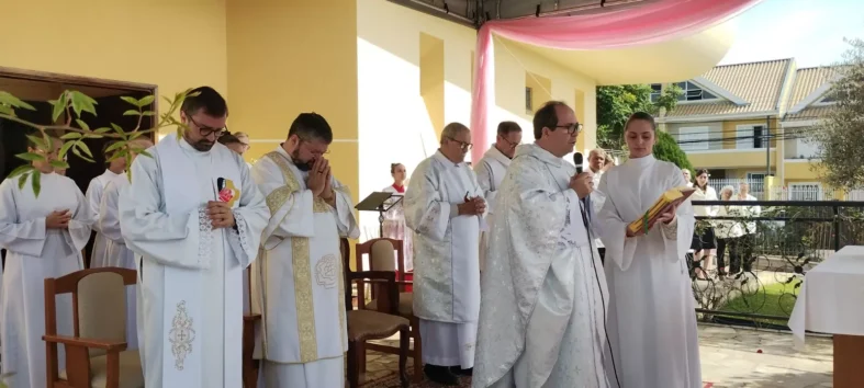 Após carreata com a imagem de Santa Rita de Cássia desde a Paróquia Menino Deus, com benção de carros, motos e caminhões, foi celebrada missa campal em frente ao “Santuário das Rosas”.
