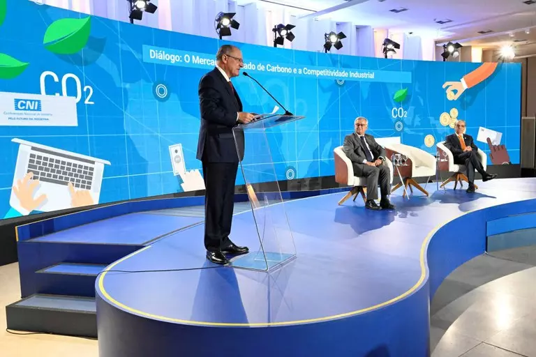 Alckmin destacou o potencial brasileiro – que tem a maior floresta tropical do mundo e grande parte da matriz energética limpa – e disse que o país pode ter ganho de 5% do PIB com o mercado regulado de carbono, o que equivale a US$120 bilhões.