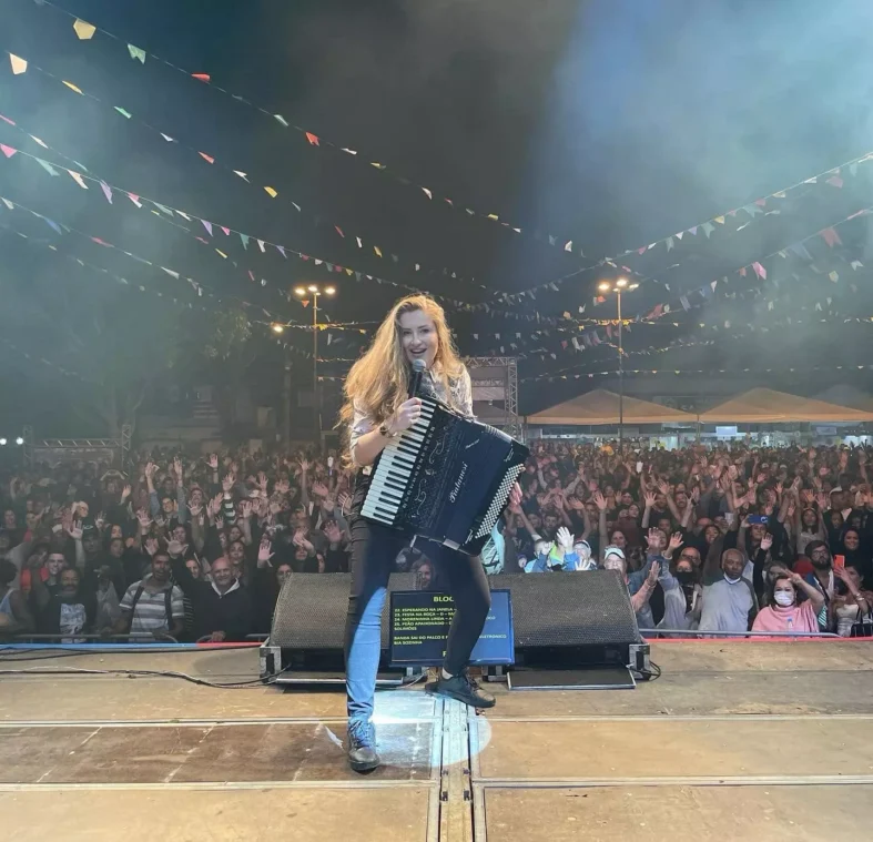 sanfoneira, Bia Socek, que promete colocar todo mundo para dançar, tanto as crianças