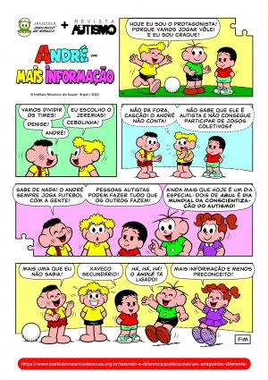 Uma história em quadrinhos (HQ) com o André, personagem autista da Turma da Mônica, sobre o Dia Mundial de Conscientização do Autismo (2 de abril) será publicada na revista Cebolinha nº 30, do mês de abril, que pode ser encontrada em bancas de jornais.