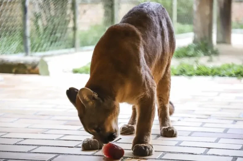 A puma Mali é um dos animais que saborearam o picolé de extrato de carne.