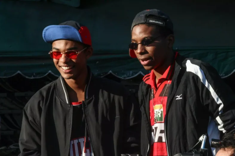 A distribuidora Manequim Filmes acaba de divulgar uma cena de “Nosso Sonho”, a cinebiografia de Claudinho e Buchecha. Dirigido por Eduardo Albergaria (“Happy Hour – Verdades e Consequências”), o filme chega aos cinemas em 21 de setembro. No trecho, os atores Juan Paiva e Lucas Penteado, que interpretam os músicos, soltam a voz em um baile de São Gonçalo, no Rio de Janeiro, que foi o palco do primeiro show dos cantores. Apesar do nervosismo do público, que ainda não tinha familiaridade com a dupla, a plateia logo caiu no encanto de “Rap do Salgueiro”, a faixa escolhida por Claudinho e Buchecha para a ocasião. Assista aqui.