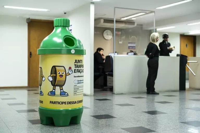 Entradas dos Anexos 1 e 2 têm pontos de coleta das tampinhas, com o objetivo de apoiar instituições para idosos em situação de vulnerabilidade social. (Foto: Carlos Costa)
