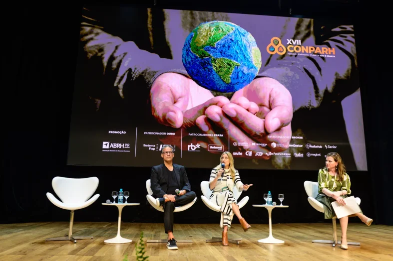 Daviane Chemin, consultora, mentora e palestrante em transformação de culturas empresariais, atuou como moderadora do painel “Desvendando o Amanhã: mundo em mudança e crescimento exponencial”, do XVII Congresso Paranaense de Recursos Humanos (CONPARH).