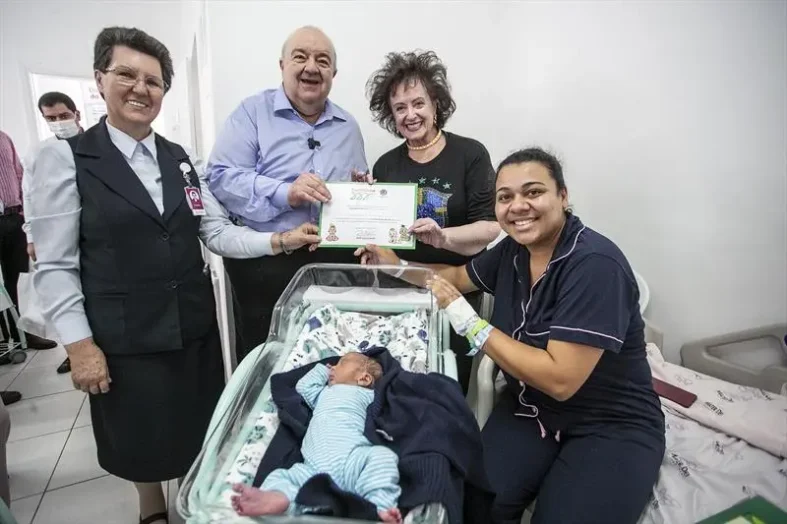 O prefeito e a primeira-dama presentearam o bebê com uma roupinha e uma capivara de pelúcia. “Nós pedimos proteção a todos que estão nesta sala, todas as mães e pais que estão com seus bebês, que estejam protegidos por todos os santos e anjos. Que cresçam com saúde, sejam formidáveis na vida, sejam extremamente abençoados. E também todos nesse hospital”, afirmou a primeira-dama.