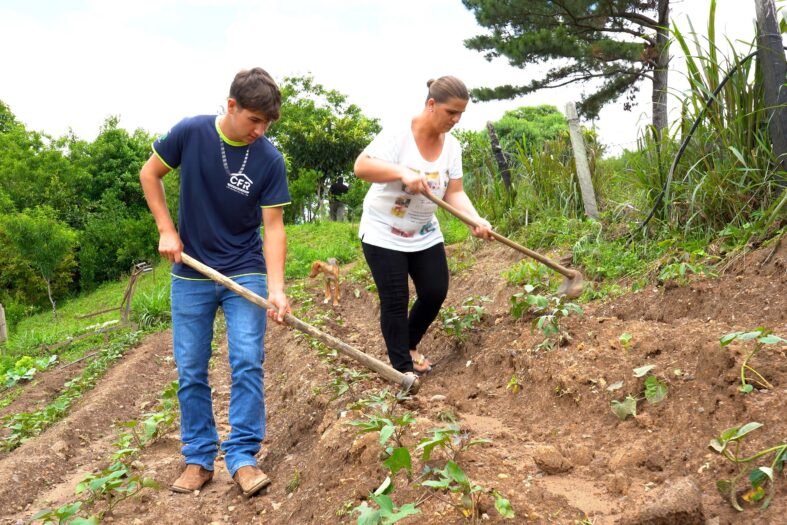 O que aprende no colégio agrícola leva de volta para a casa, ajudando a melhorar o cultivo da pequena horta da família.