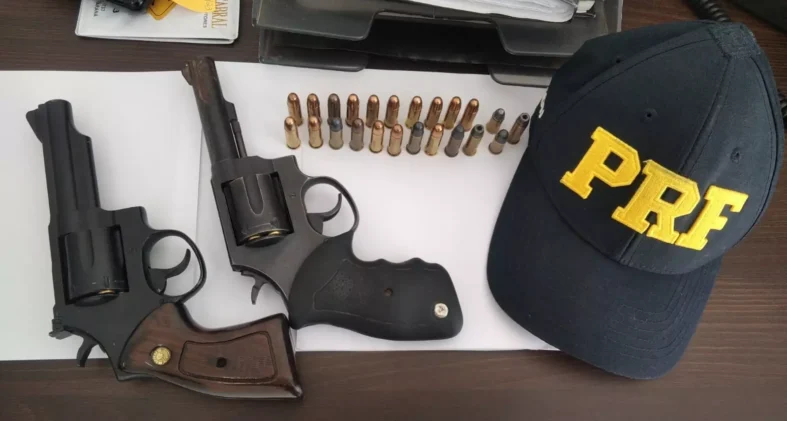 De posse das características dos homens e do carro utilizado na fuga, os policiais abordaram os dois e encontraram com eles, dois revólveres calibre 38, 37 munições calibre 38, além de um cigarro de maconha.