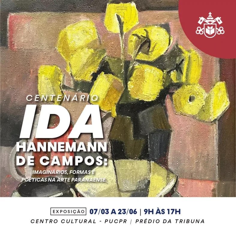 Até dia 23 de junho, a Pontifícia Universidade Católica do Paraná (PUCPR) é palco para a exposição “Centenário Ida Hannemann de Campos: imaginários, formas e poéticas na arte paranaense”. As obras foram selecionadas com a curadoria de Fernando Antonio Fontoura Bini, professor de História da Arte da PUCPR. A exposição é aberta ao público, das 9h às 17h, no Centro Cultural do câmpus Curitiba. Visitas aos sábados e noturnas podem ser feitas sob agendamento.