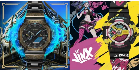 O G-Shock GA-110LL, é inspirado na Jinx, uma das personagens jogáveis do LOL e uma das campeãs mais utilizadas durante as partidas por conta de suas habilidades únicas e estilo. É apreciada tanto por sua jogabilidade desafiadora quanto por sua personalidade excêntrica. As características da Jinx foram transmitidas ao relógio, com um visual neon e colorido em rosa, azul, amarelo e preto e ainda com um ponteiro em homenagem ao foguete Super Mega Death, a habilidade poderosa da jogadora com capacidade de destruição de longo alcance. O modelo é entregue em uma lata, também com a estampa dos ícones, tornado o relógio diferenciado.