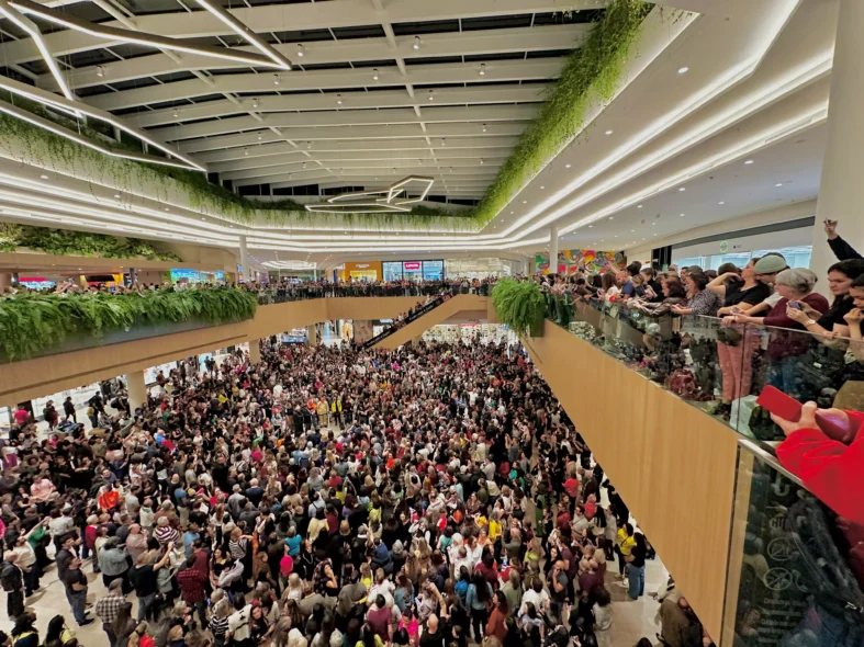 Mais de mil vozes iniciaram a apresentação pelos corredores do shopping, e se encontram na praça central, acompanhadas por teclado, e apresentaram um repertório com clássicos do rock brasileiro, hits do pop internacional e músicas populares brasileiras que emocionaram os clientes.