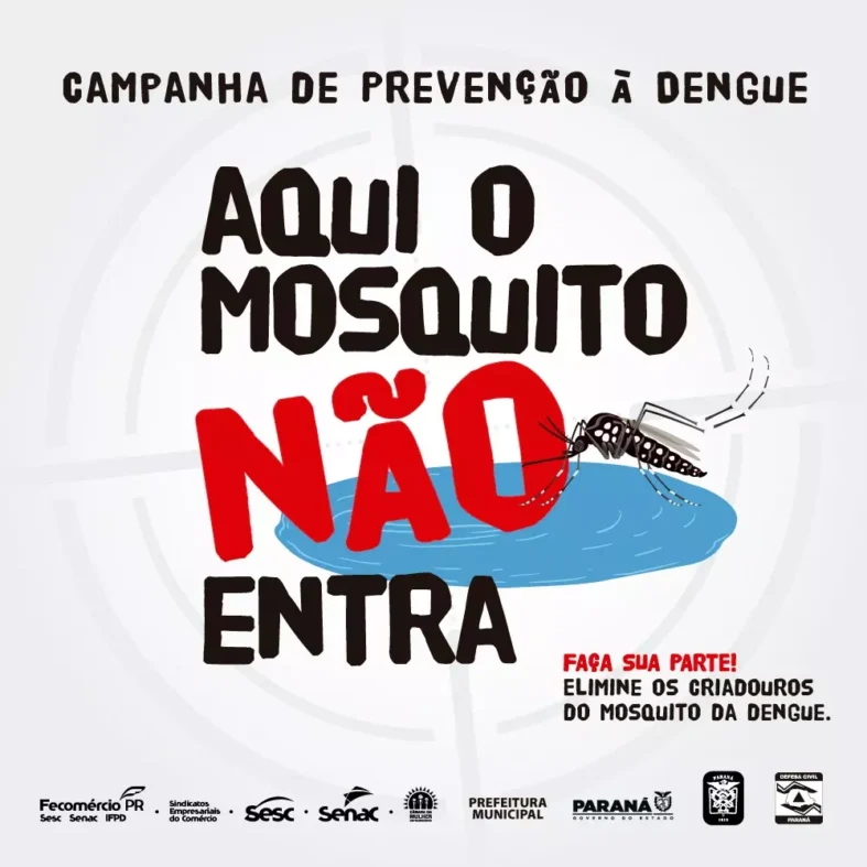 Pelo terceiro ano consecutivo o Sistema Fecomércio Sesc Senac PR, as Secretarias de Estado da Saúde e de Educação do Paraná, a Defesa Civil, a Casa Civil, a Câmara da Mulher e os Sindicatos Empresariais do Comércio promovem a Campanha “Aqui o Mosquito Não Entra!”.
