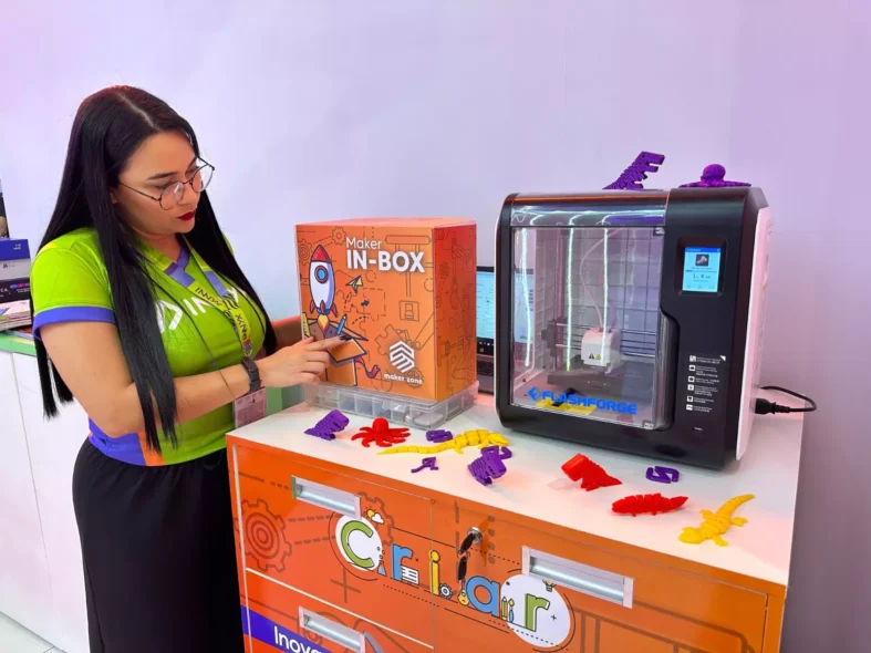O Maker Zone garante atividades na prática, estimulando o aluno a desenvolver o pensamento crítico, por meio de resoluções de problemas e aprendizados. O laboratório móvel é o lançamento da empresa Innyx na Bett Brasil, que tem a previsão de reunir mais de 35 mil pessoas em quatro dias de evento. O modelo pode ser transportado com facilidade e possui vários elementos como impressora 3D, ensino de robótica e outros programas educativos.