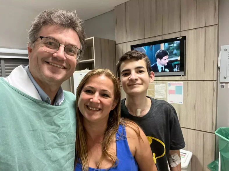 “O Luiz estava com um tumor raro, conhecido por xantoastrocitoma pleomórfico, e a patologia demorou para sair. O tamanho já estava comprometendo gravemente as funções dos membros cranianos, por isso a dificuldade de engolir. A cirurgia era a única opção de tratamento”, explica o neurocirurgião do Hospital Marcelino Champagnat.