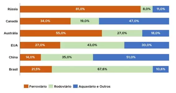 Com relação ao transporte de mercadorias, esse demonstra eficiência na movimentação de grandes volumes e cargas a longas distâncias, reduzindo congestionamento em estradas, dependência do setor rodoviário e emissão de gases de efeito estufa.