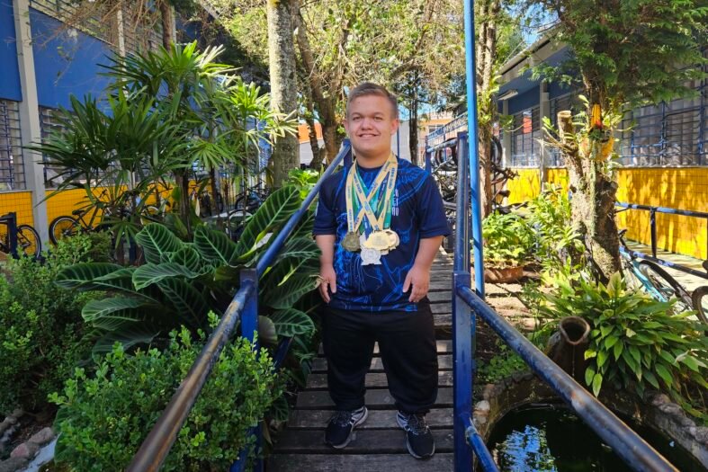 O estudante Elton Nogueira, de 17 anos, conquistou a medalha de ouro nos Jogos Paradesportivos do Paraná no parabadminton. Bicampeão e invicto na competição, o aluno da rede estadual alia rotina de treinos ao desempenho escolar, com o apoio da escola e da família.