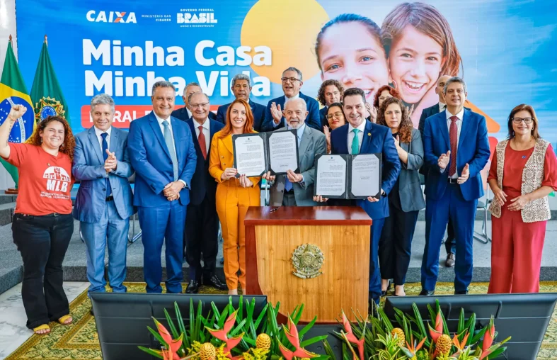 O programa MCMV chega a 2024 celebrando a marca de mais de 7,7 milhões de moradias contratadas. Criado em março de 2009 durante o segundo mandato do presidente Luiz Inácio Lula da Silva, o programa, que foi descontinuado no governo passado, foi retomado em fevereiro do ano passado, com a Medida Provisória nº 1.162, convertida na Lei nº 14.620, de 13 de julho de 2023.