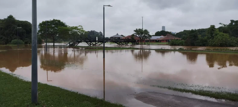O Parque Barigui volta a ficar com áreas inundadas e fotos e vídeos se espalham pelas mídias sociais.