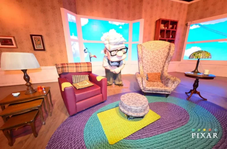 Mundo Pixar remonta cenários com impressões em gigantografias e objetos 3D, representando filmes como UP – Altas Aventuras, Toy Story, Carros, Soul, Luca, Procurando Nemo, Monstros S.A., Lightyear, Ratatouille, Elementos e Divertida Mente.