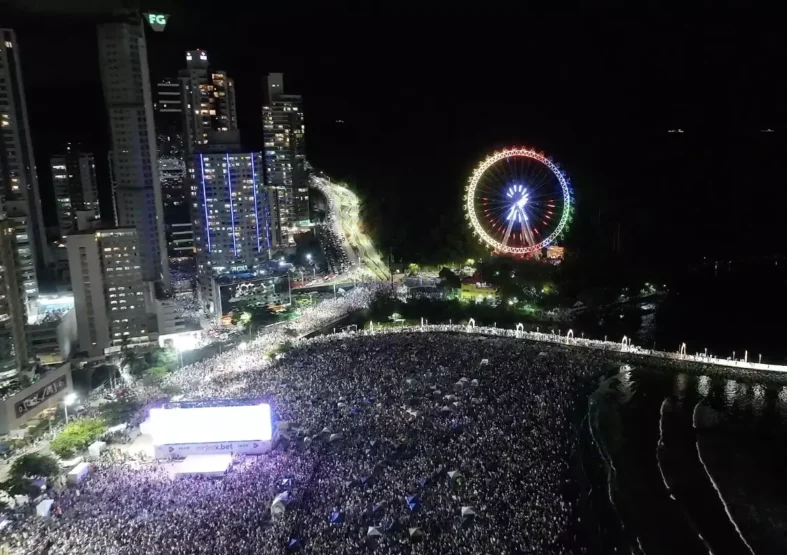 A tradição da contagem regressiva na FG Big Wheel transforma o Pontal Norte em um palco emocionante. A multidão reunida na orla da cidade conta os últimos segundos do ano em coro, enquanto milhares de celulares
