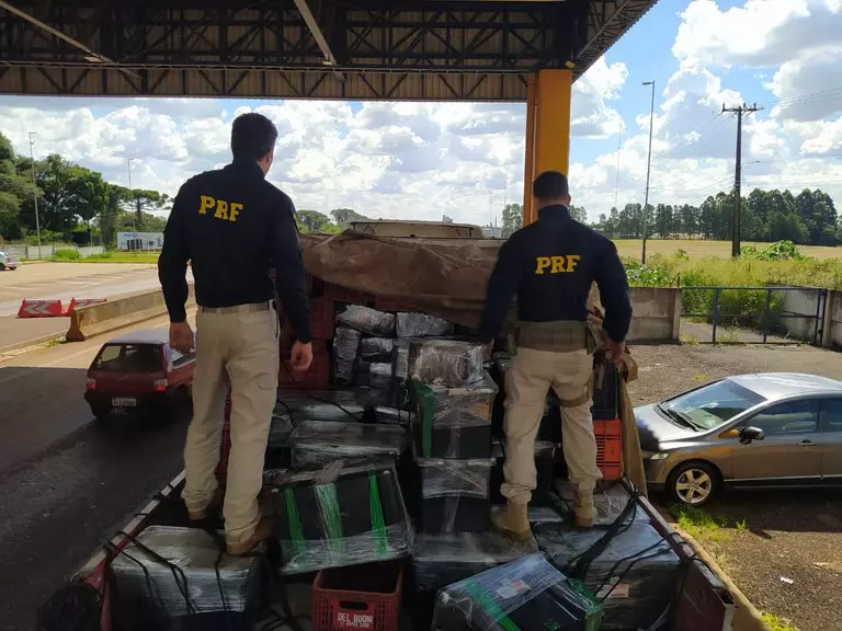 No sábado (18), na BR 277, em Cascavel/PR, a Polícia Rodoviária Federal (PRF) abordou um caminhão conduzido por um motorista, de 37 anos, sem CNH, acompanhado de um passageiro. Durante a fiscalização, a equipe encontrou uma grande quantidade de maconha e skunk no veículo, totalizando um peso de 4.476 kg (4.172,1 kg de maconha prensada (tabletes) e 303,9 kg de skunk). Além disso, a placa do semi-reboque apresentava indícios de falsificação.
