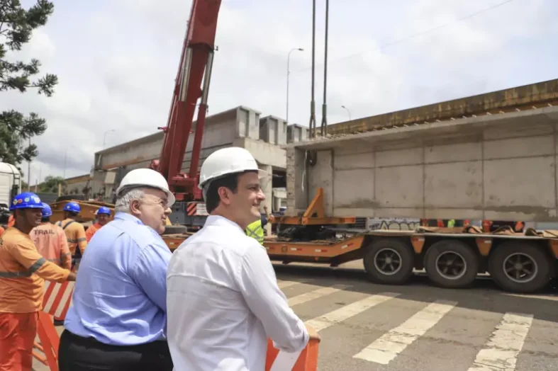 A viga mede 43,5 metros e pesa 110 toneladas, equivalente a 110 carros populares. Estão sendo instaladas quatro do mesmo porte de cada lado do viaduto, além de 12 menores (com 32 metros e 80 toneladas) também de cada lado.