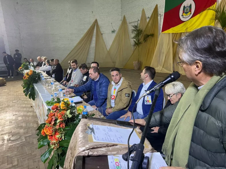 Milhares de produtores rurais e lideranças do agronegócio gaúcho lotaram, nesta quinta-feira (4), o ginásio da Fenarroz, em Cachoeira do Sul (RS), para protestar contra a demora do governo federal em anunciar medidas de socorro ao setor. A mobilização fez parte do movimento SOS AGRO RS, organizado por diversas entidades representativas do setor produtivo.