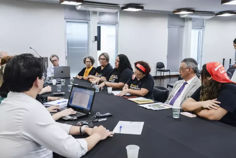 Participaram, com as direções dos sindicatos, os secretários Paulo Schmidt (Educação) e Daniele Regina dos Santos (Gestão de Pessoal).