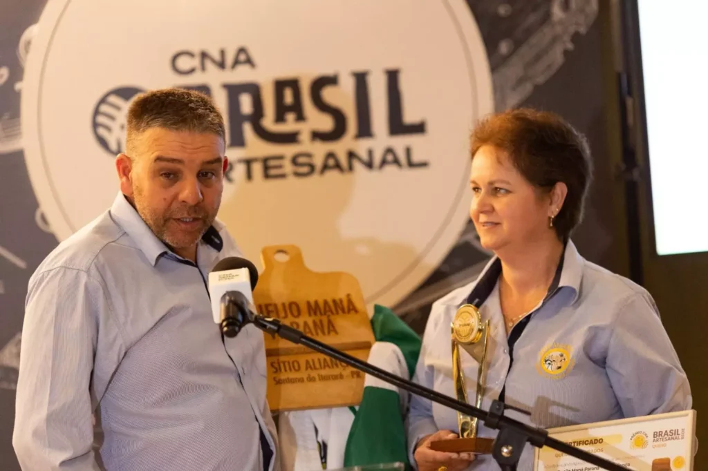 O queijo Maná Paraná, da Queijaria Sítio Aliança, do município de Santana do Itararé, conquistou o primeiro lugar na categoria “Tradicional” do Prêmio Brasil Artesanal de Queijos 2025, promovido pela Confederação da Agricultura e Pecuária do Brasil (CNA). Outros dois produtos do Paraná ficaram em segundo lugar nas suas respectivas categorias: o queijo Cornelia Gouda com ervas italianas, da Queijaria Cornelia, na “Adição/Condimentos”; e o Colonial Serra dos Macacos, da empresa de mesmo nome, na “Tratamento Térmico”. A cerimônia de premiação ocorreu nesta terça-feira (22), em Brasília. Ao todo, o concurso avaliou 186 queijos de diferentes regiões do Brasil.
