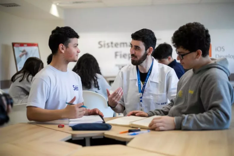 No Sesi, a metodologia de ensino é fundamentada no fazer. Durante as oficinas de aprendizagem, os estudantes colocam a “mão na massa”, pesquisam, levantam hipóteses, experimentam e compartilham os resultados nos trabalhos em equipe. Assim, o Sesi promove o desenvolvimento de soft skills, com a apresentação trimestral de soluções encontradas pelos estudantes para problemas reais da indústria e da sociedade.