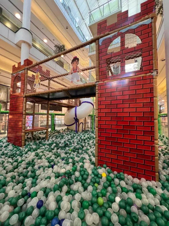 O público infantil agora tem uma nova opção de diversão no Shopping Curitiba. Com piscina de bolinhas nas cores verde e branca, escorregador caracol, cama elástica, obstáculos e passarela, a atração é inspirada no mundo das arábias e tem um castelo cenográfico como destaque.