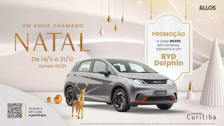 “Este sorteio é uma forma de agradecimento aos nossos clientes e lojistas que estiveram conosco durante o ano. O público poderá aproveitar o nosso amplo mix de lojas para realizar as compras de fim de ano, visitar a nossa decoração de Natal que está linda e ainda concorrer ao BYD Dolphin, um carro bastante desejado”, detalha Bruna Habinoski, gerente de Marketing do Shopping Curitiba.