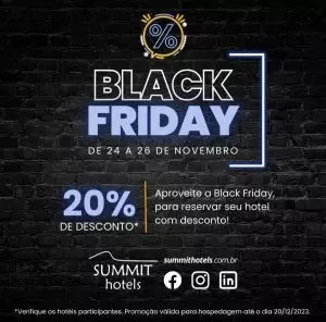 Quem está planejando sua próxima viagem e buscando uma hospedagem que una qualidade, conforto e economia, basta aproveitar a Black Friday da Summit Hotels. Uma oportunidade única para vivenciar o melhor da hospitalidade com um toque de sofisticação a preços irresistíveis.