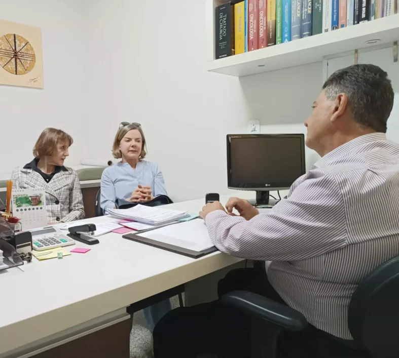 As deputadas Gleisi Hoffmann e Luciana Rafagnin comemoram o anúncio de recursos para aquisição de um pet-scan para o Hospital…