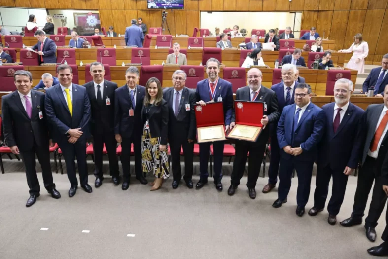 A Itaipu Binacional recebeu nesta quarta-feira (19), em Assunção, a Ordem Nacional do Mérito Comuneros, a mais alta condecoração concedida pela Câmara dos Deputados do Paraguai. A homenagem foi proposta em razão do aniversário de 50 anos da empresa e 40 anos de geração de energia limpa e renovável. Os diretores-gerais da Itaipu, Enio Verri (Brasil) e Justo Zacarías Irún (Paraguai), receberam a distinção.