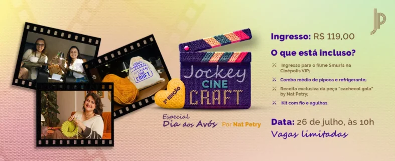 “A proposta do Jockey é criar experiências que toquem as pessoas de forma genuína. O Cine Craft tem sido um sucesso porque vai além da atividade manual: é um espaço de encontro, conexão e memória afetiva. Neste Dia dos Avós, queremos proporcionar exatamente isso: um momento de troca e carinho entre gerações”, destaca a gerente de marketing do Jockey Plaza Shopping, Michelle Cirqueira. “Nosso público tem buscado experiências com significado e iniciativas como essa reforçam nosso papel como espaço de convivência e bem-estar”, completa.