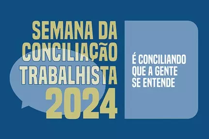 A Semana Nacional da Conciliação Trabalhista 2024 é promovida anualmente pela Justiça do Trabalho e o slogan deste ano afirma: “É conciliando que a gente se entende”. A identidade visual da campanha apresenta em destaque uma iconografia dourada de balão e a letra “D”, que representa o diálogo e o debate em prol de benefício mútuo. O dourado sobre a letra azul escuro também ressalta a ideia de iluminação sobre um conflito que precisa de uma solução dialogada.